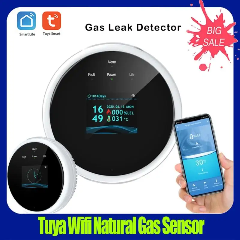 Датчик природного газа Tuya с Wi-Fi, детектор утечки горючего газа, датчик температуры, бытовой смарт-датчик с ЖК-дисплеем и питанием от USB
