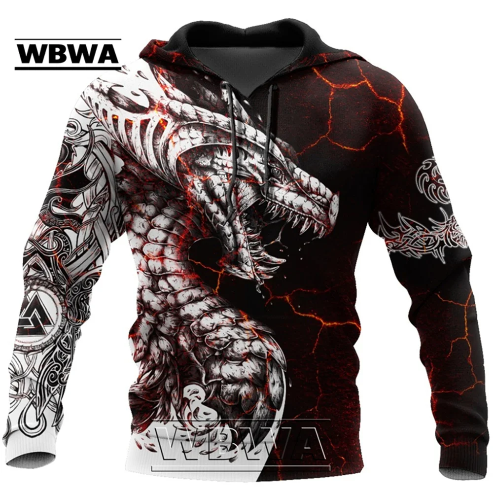 Толстовка мужская черно-белая с 3D-принтом тату-дракона, 2021, свитшот, уличный пуловер унисекс, повседневная спортивная одежда 110-6XL