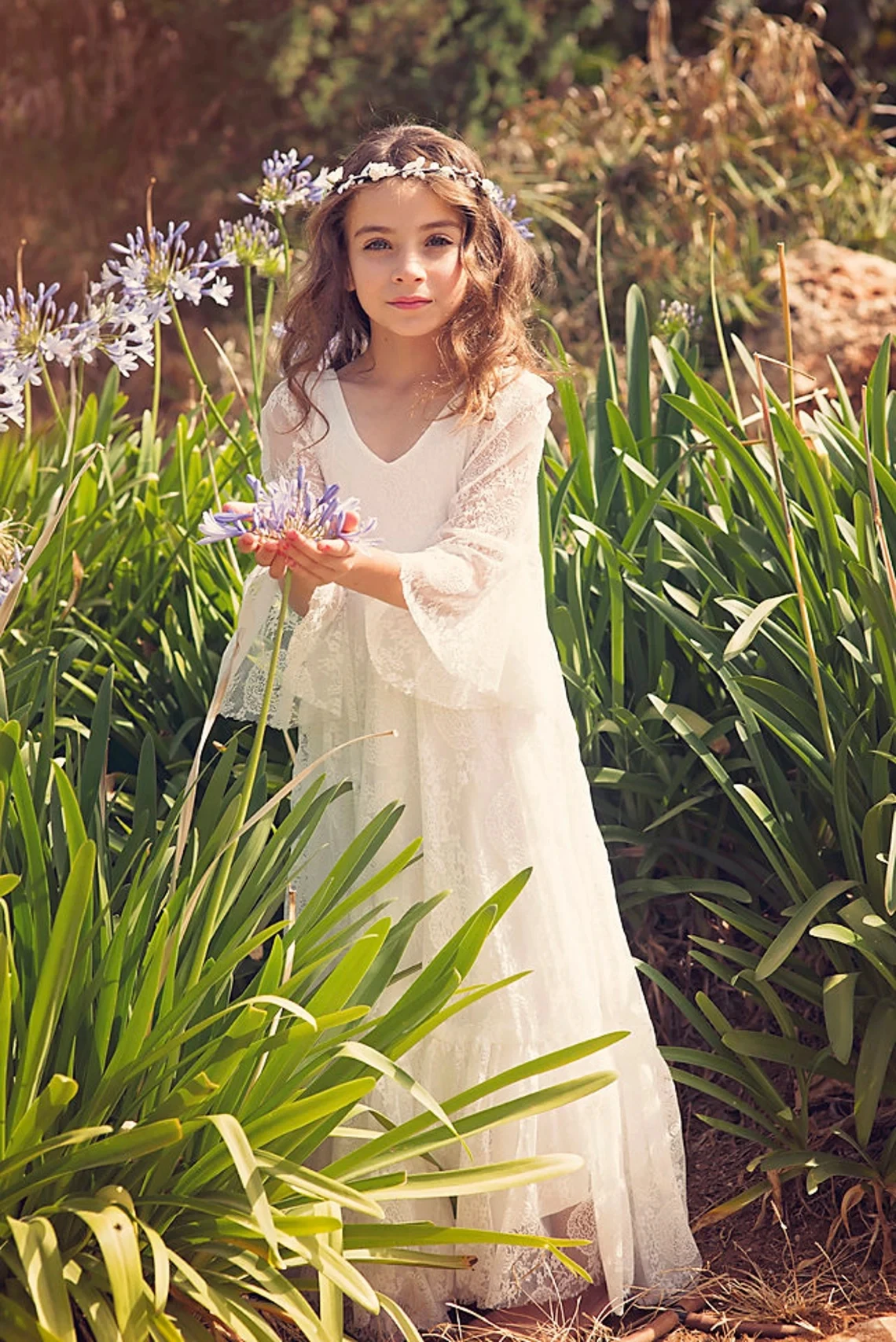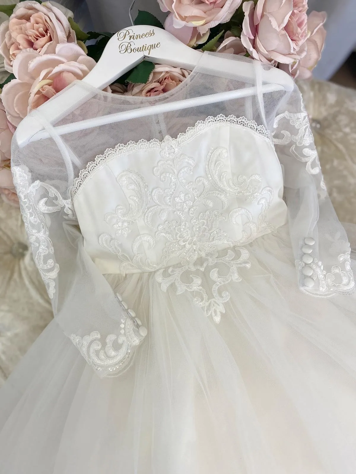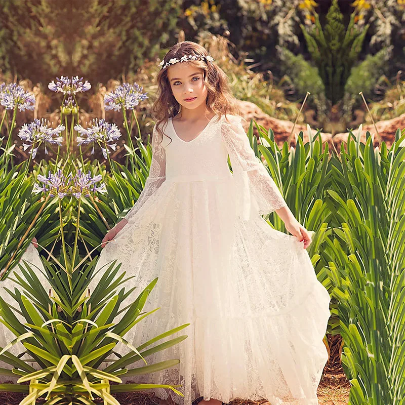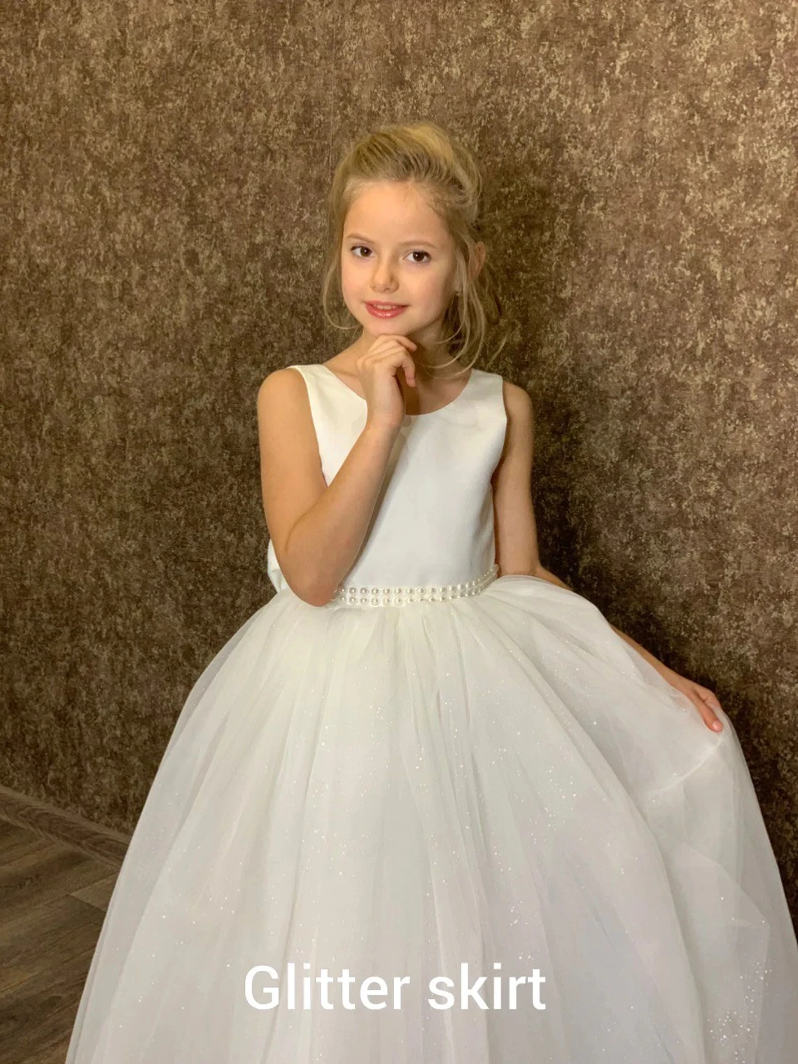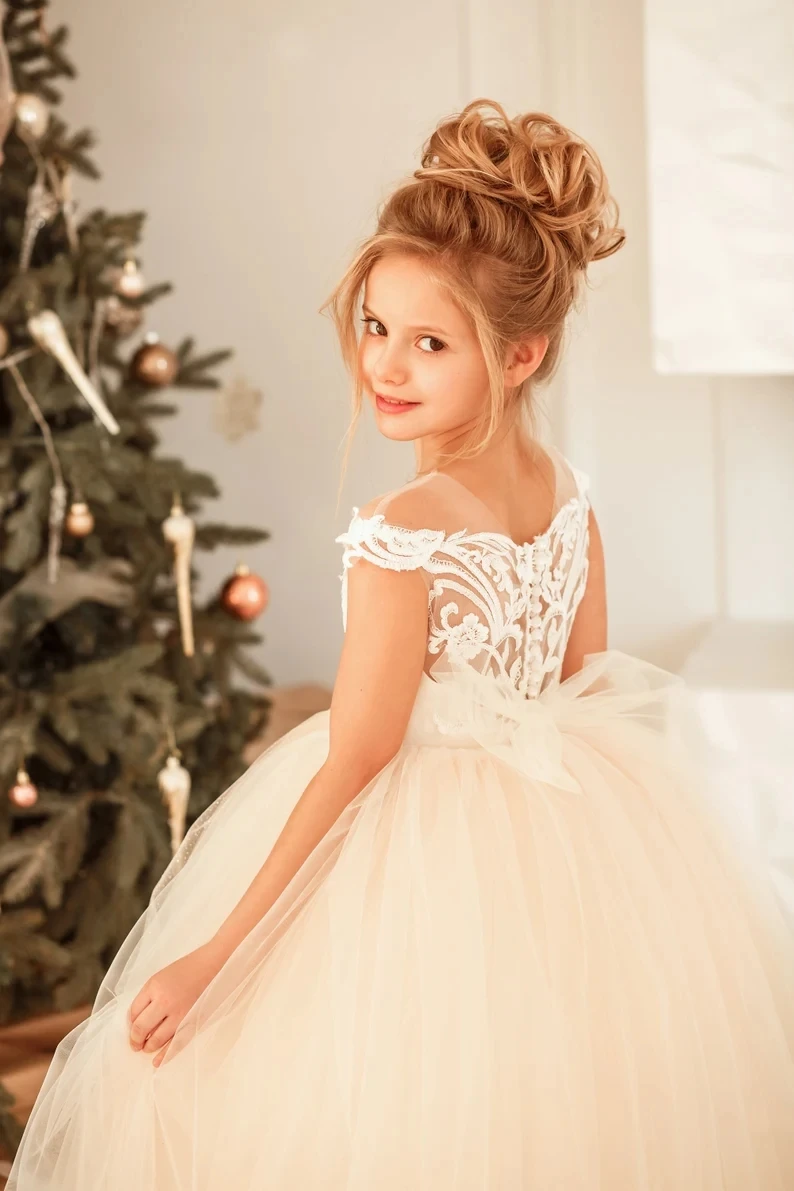 FATAPAESE Цветочное платье для девочки цвета слоновой кости, цвета шампанского, платье принцессы на Рождество, бальное платье, свадебвечерние, вечернее платье