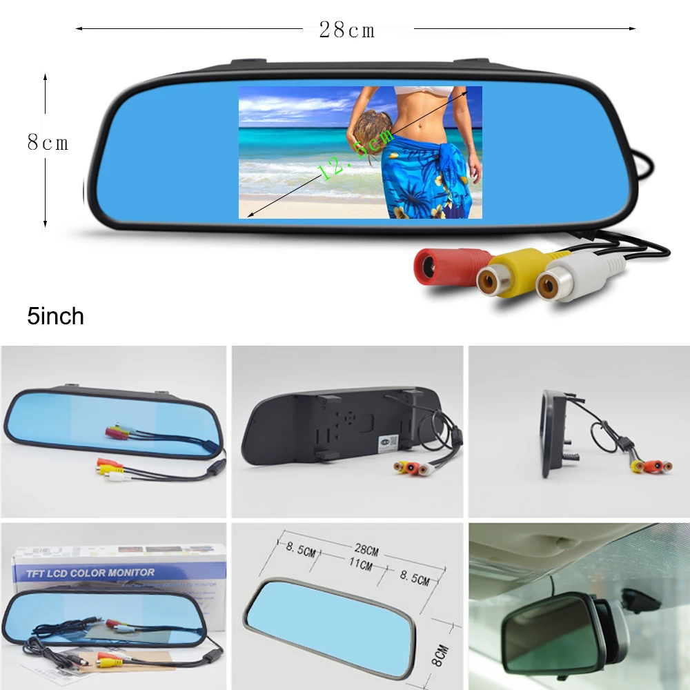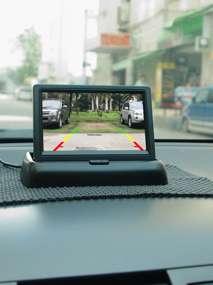 Цветное зеркало с ЖК-дисплеем 4,3 дюйма, 5 дюймов, складной кронштейн заднего вида Автомобильный монитор для камеры заднего вида HD 5" на подставке, стационарный