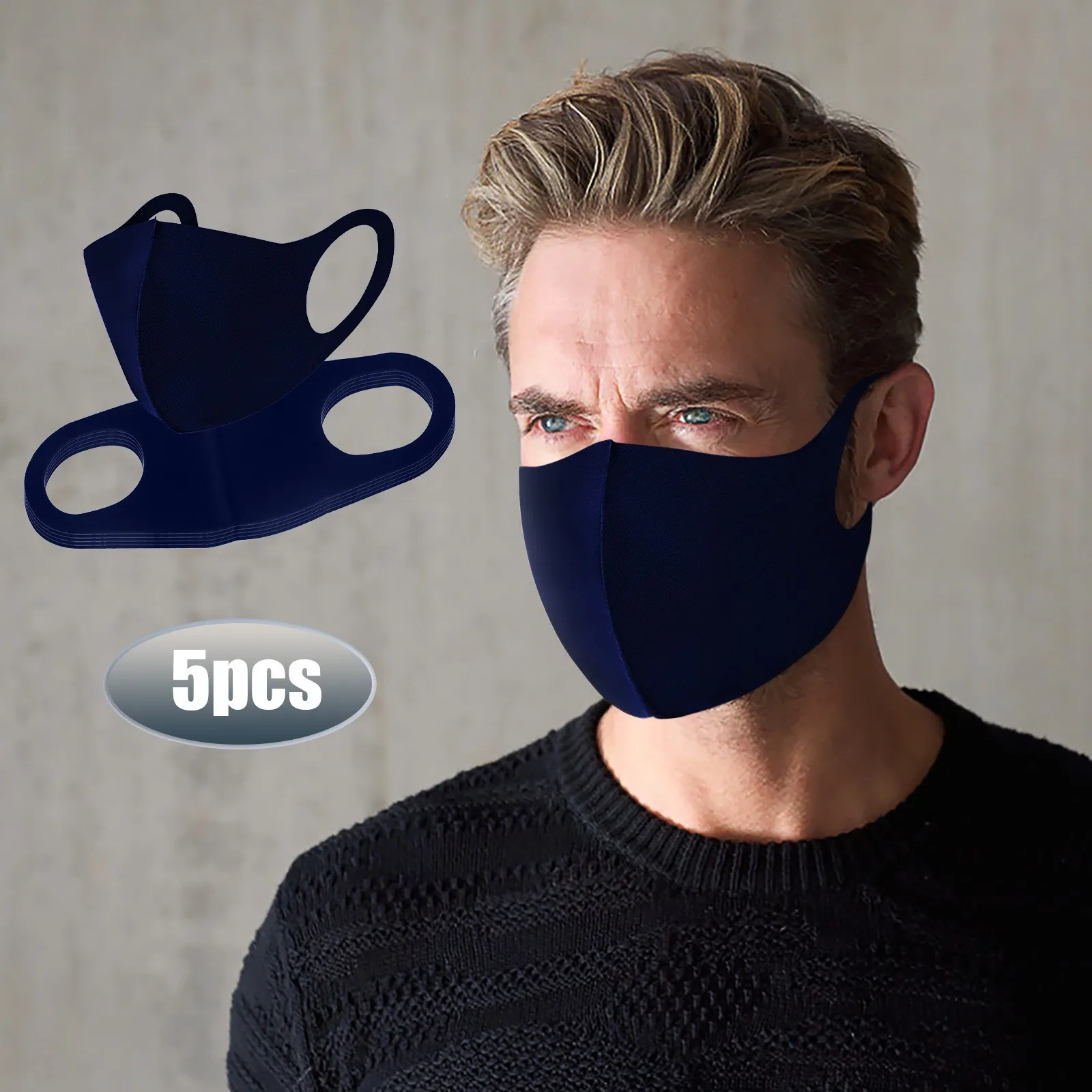 Черная моющаяся многоразовая маска для лица, 5 шт., защитные маски ...
