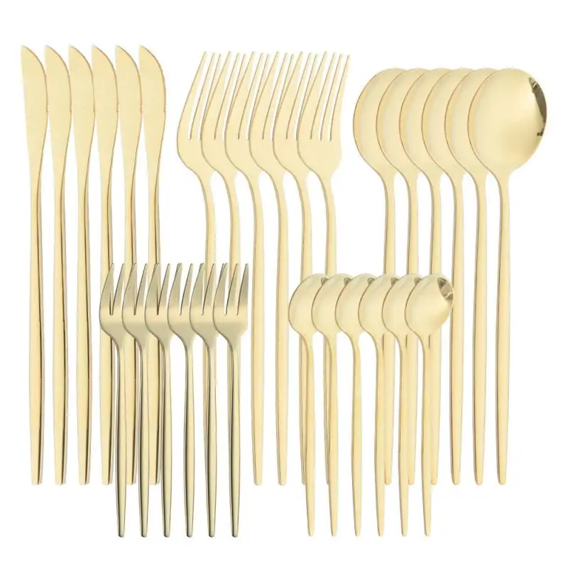 Набор золотых столовых приборов из нержавеющей стали, 30 шт.
