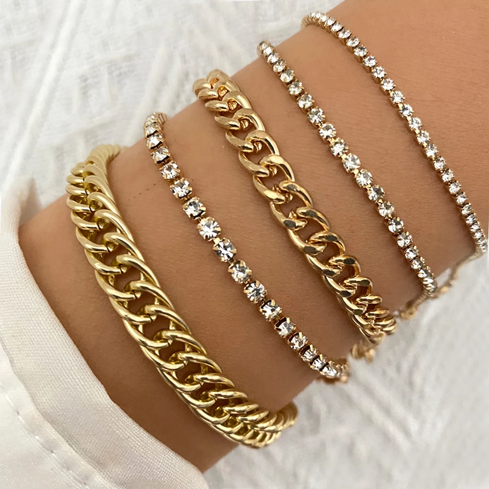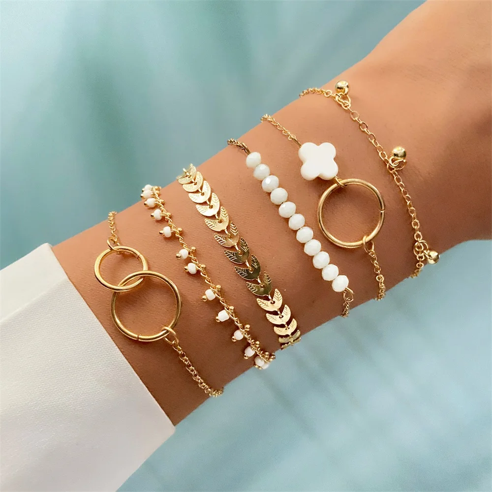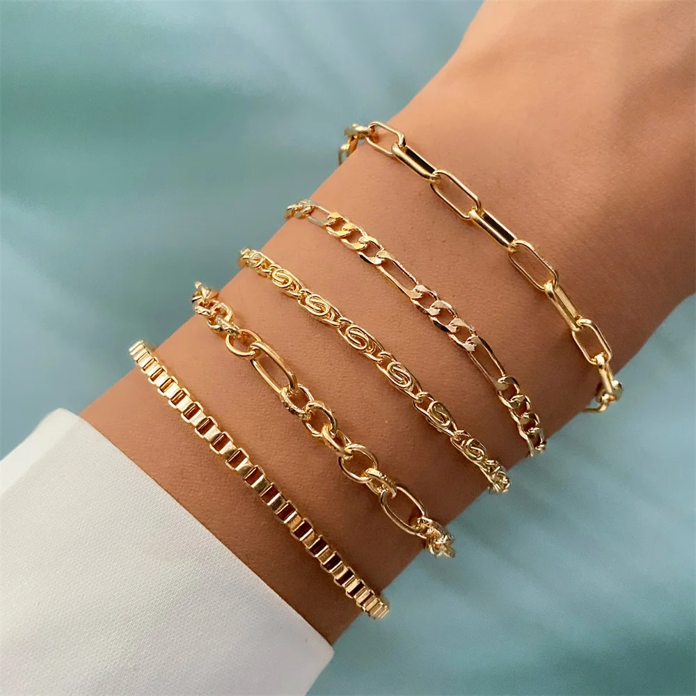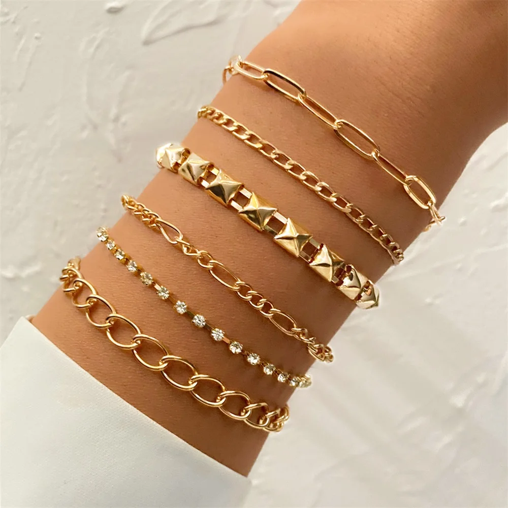 Набор женских браслетов из цепочек золотого цвета, 6 шт.партия, кла...