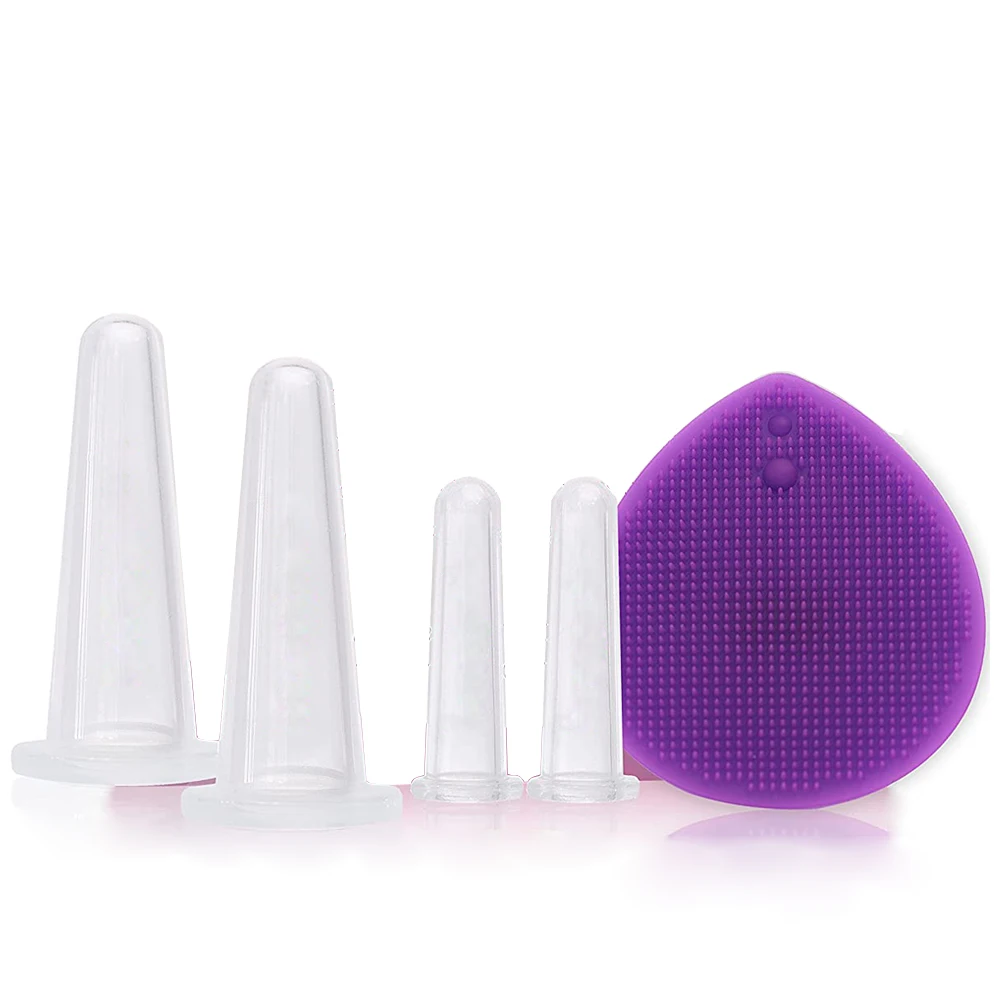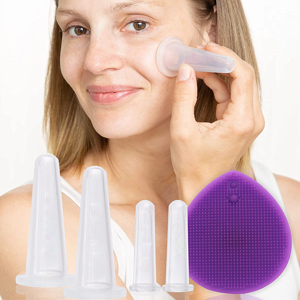 Набор из 5 предметов для светящейся кожи, Антивозрастные массажные чашки для лица, уменьшающие морщины и тонкие линии, силиконовая отшелушивающая щетка