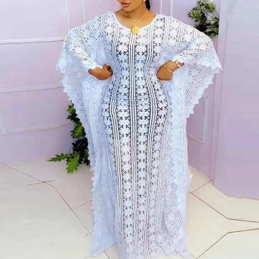 Африканские платья для женщин большого размера, белое кружевное платье, комплект из 2 предметов, Анкара, Boubou 2022, новинка, Африканское платье, традиционное женское платье
