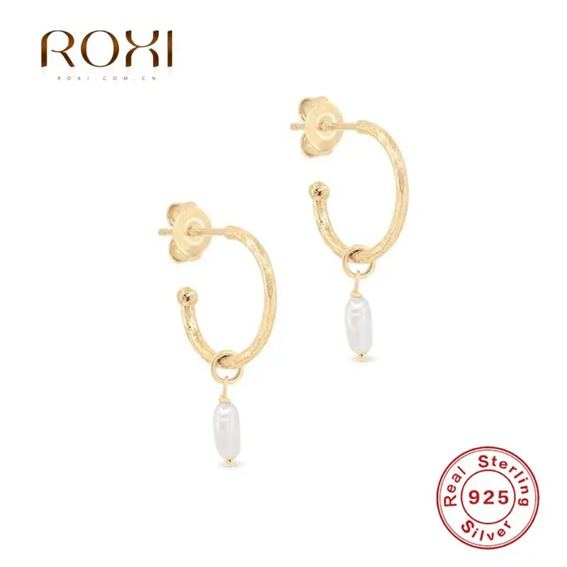 Женские серьги-гвоздики ROXI C, серьги-гвоздики с жемчугом, 925 пробы Серебряный пирсинг, ювелирное изделие, подарок 925 пробы, Brincos