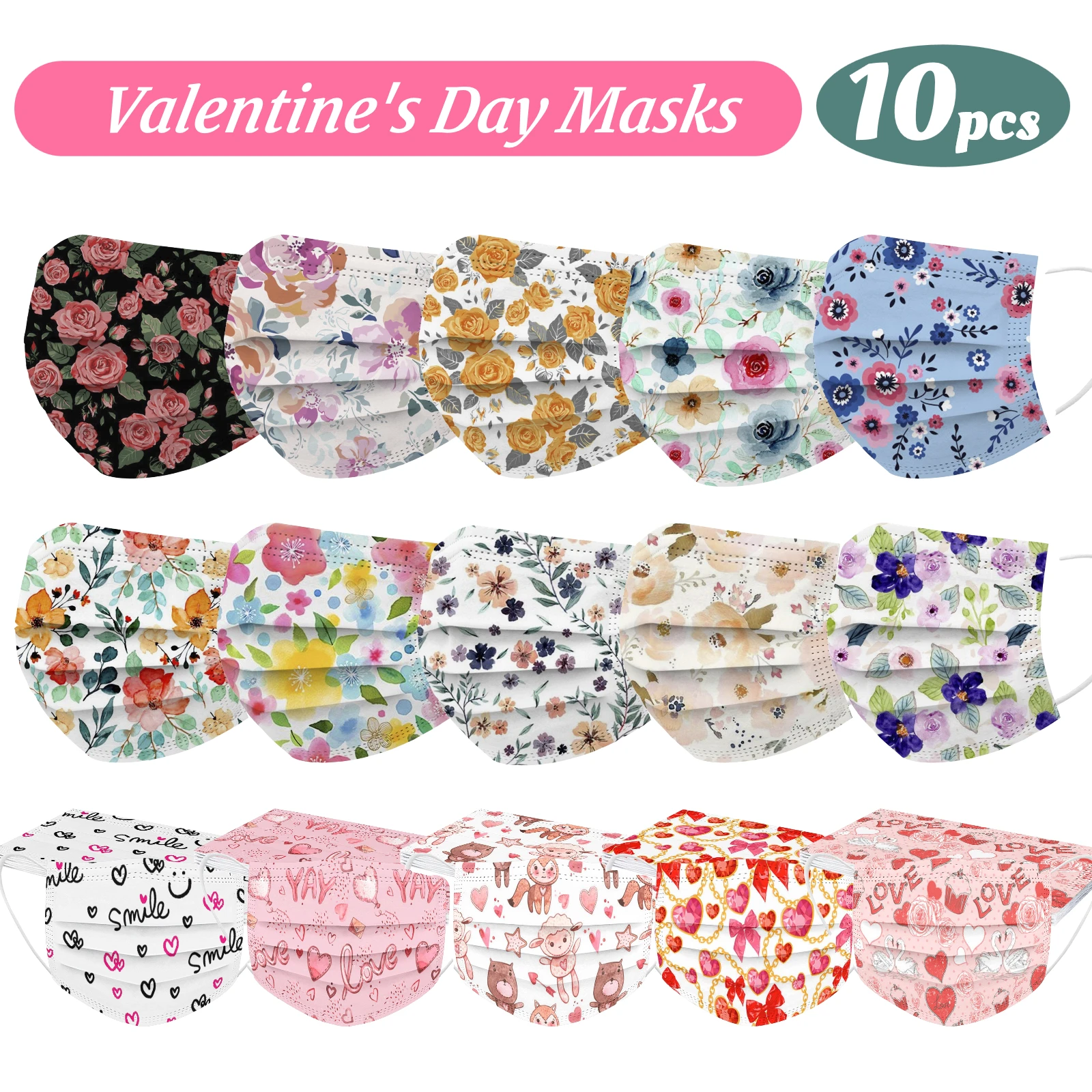 Классические маски для взрослых с цветочным принтом, дышащие маски, хирургические маски, 10 шт., Одноразовые 3-слойные дизайнерские маски для лица