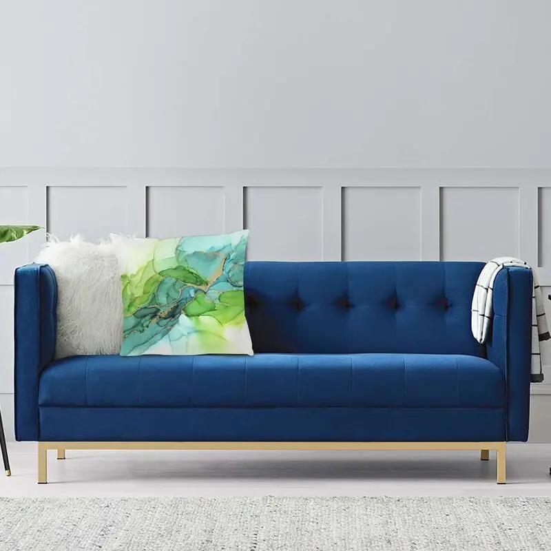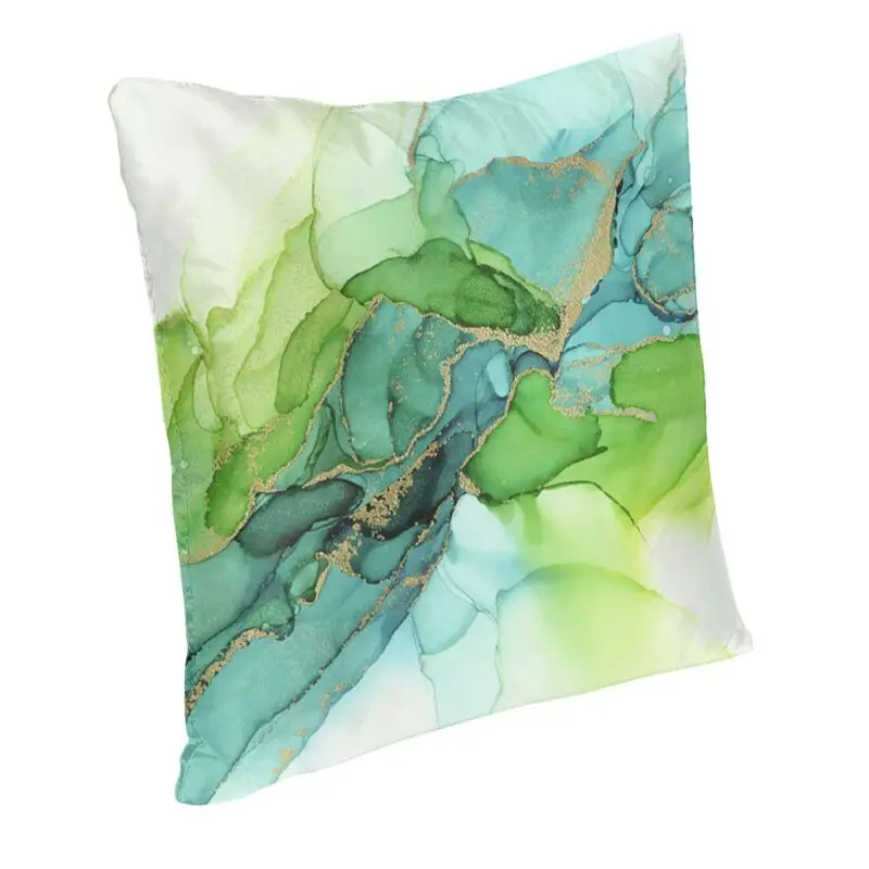 Чехол для подушки из мраморной фольги с принтом линий, домашний декоративный милый чехол для подушки на стул с абстрактными чернилами синего, золотого, зеленого цветов, квадратный чехол для подушки