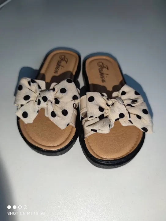 Летние пляжные тапочки для маленьких девочек, Нескользящие тапочки с бантом и открытым носком