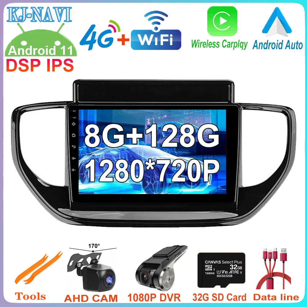 8 + 128G DSP IPS Android 11 для Hyundai Solaris 2 II 2020 2021 Автомобильный видео GPS-навигатор беспроводной Carplay мультимедийный плеер радио