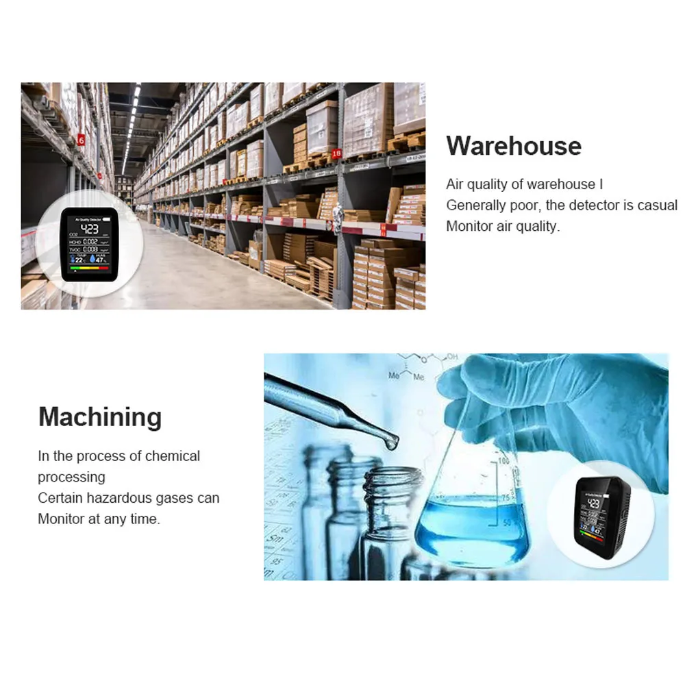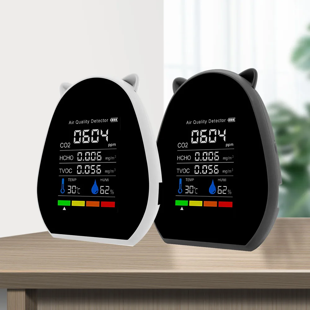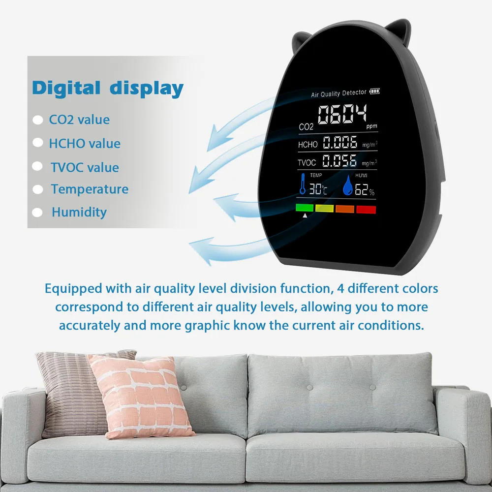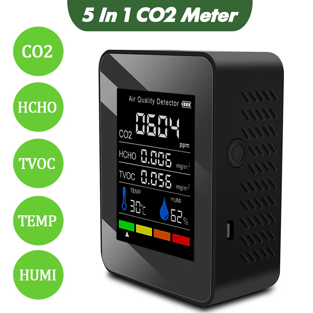 Монитор качества воздуха на 1200 мА ч, измеритель CO2, датчик углекислого газа, TVOC, HCHO, отображение температуры и влажности электроэнергии