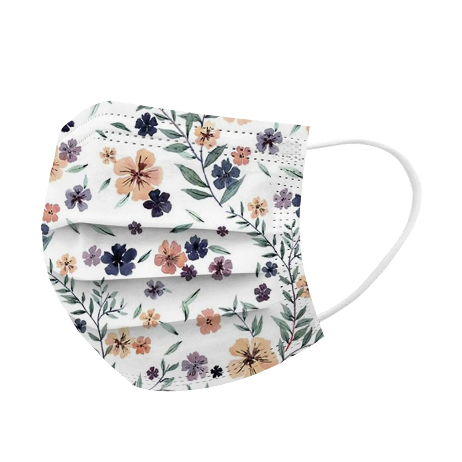 Маски одноразовые с цветочным принтом для взрослых, защитные 3-слой...