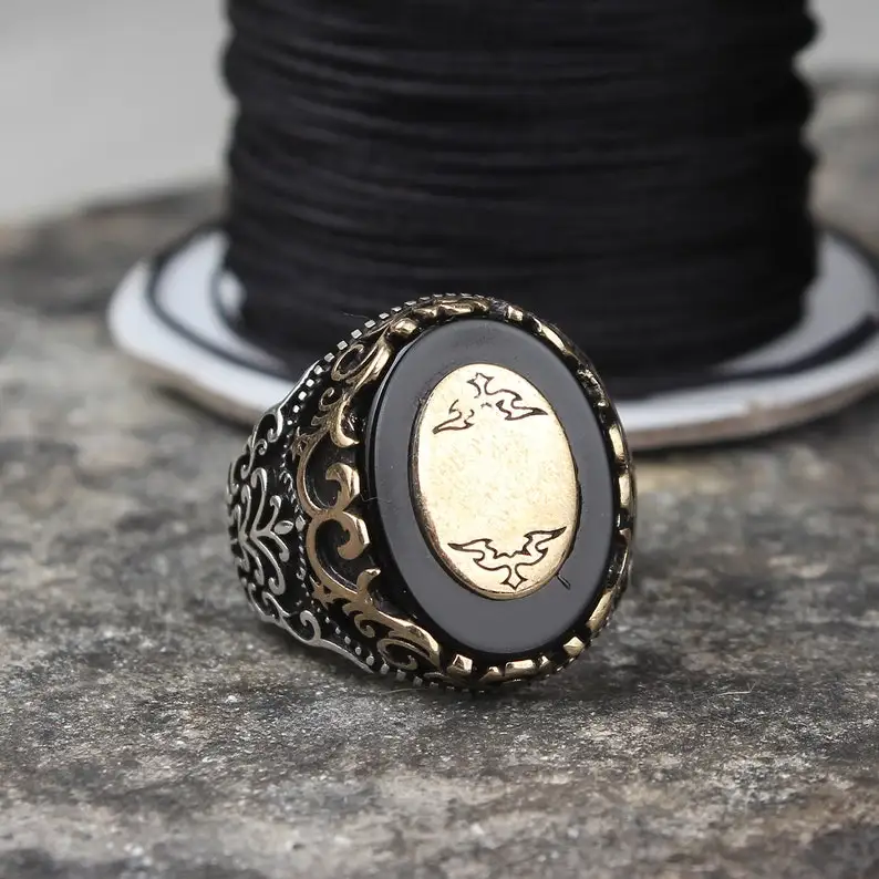 Мужское серебряное кольцо с ониксом, персонализированное мужское серебряное кольцо