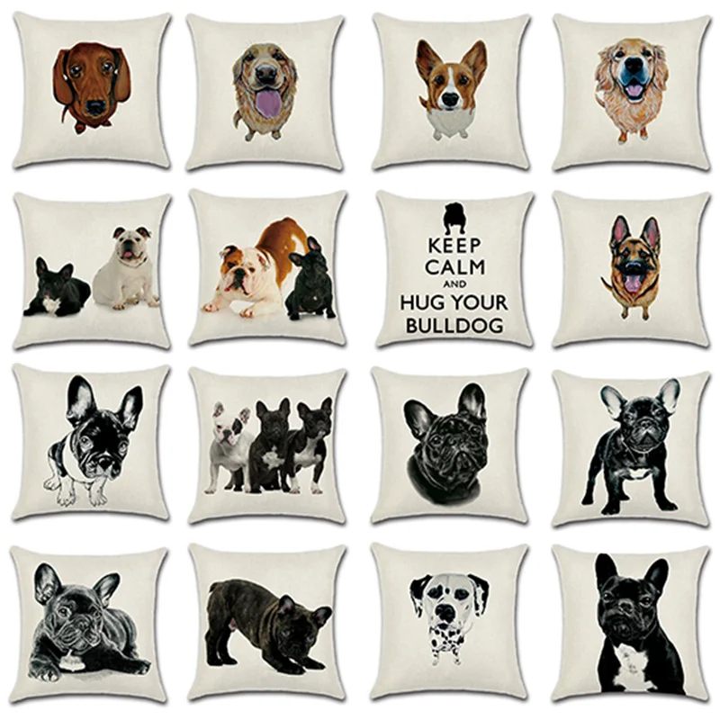 Льняная квадратная подушка с мультяшным принтом собаки, наволочка для автомобиля, дивана, офиса, простые украшения для дома