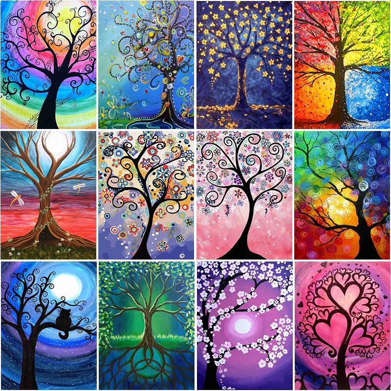 Алмазная вышивка с деревом, алмазная вышивка с Луной, мозаика из бисера, 5D DIY вышивка, Декор для дома
