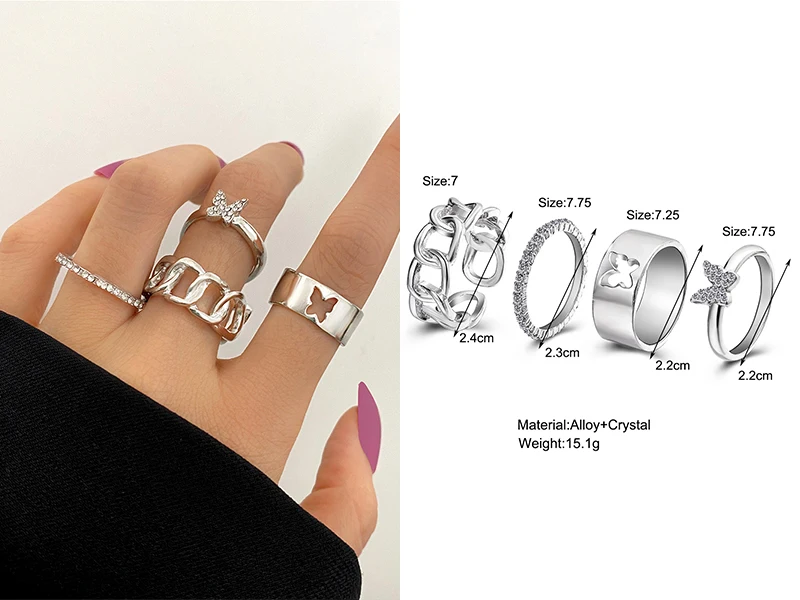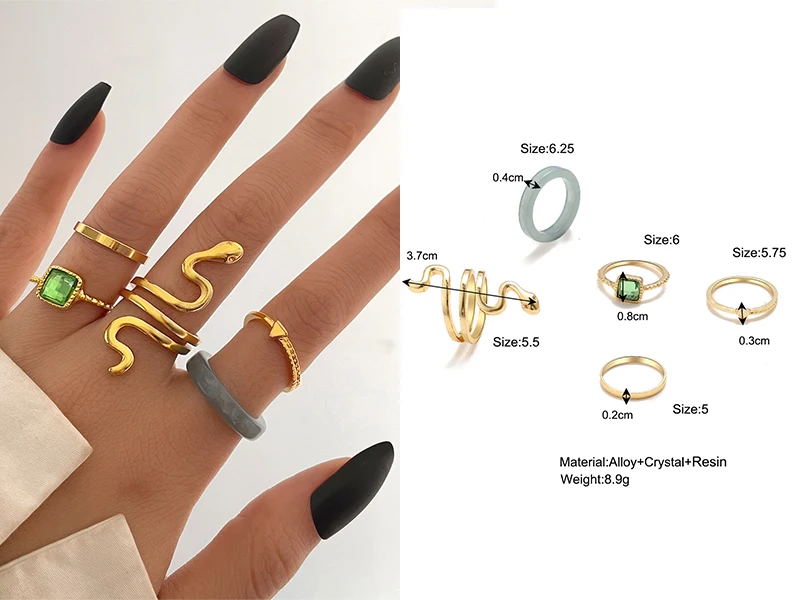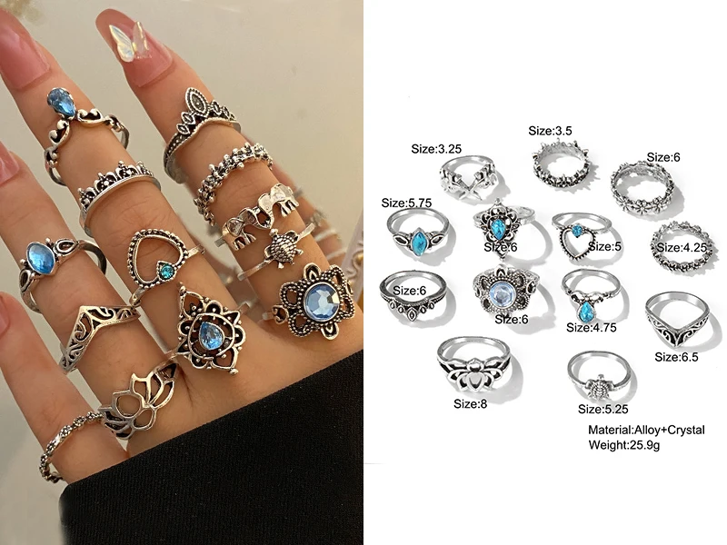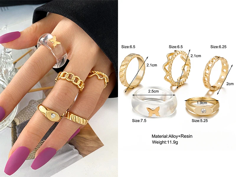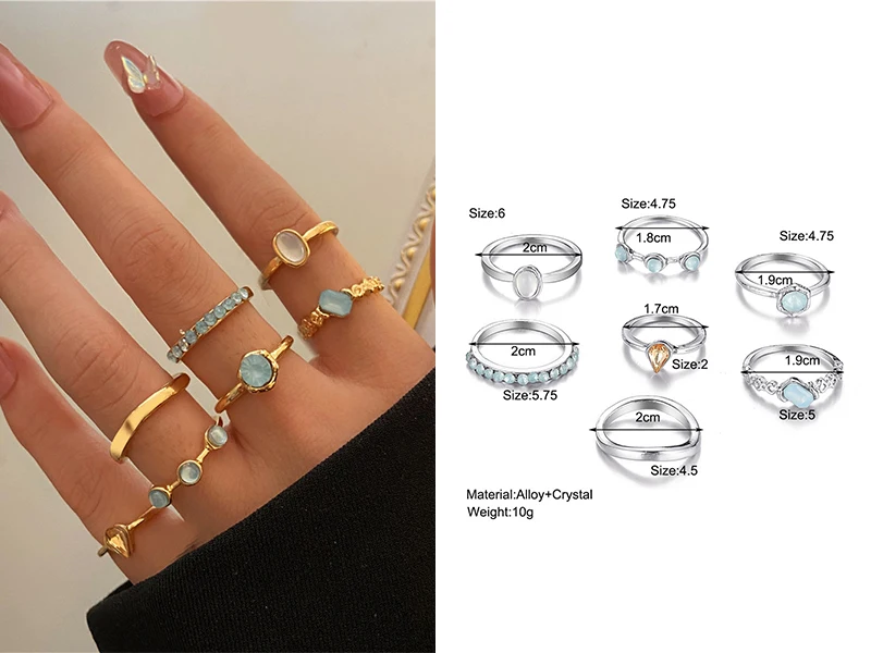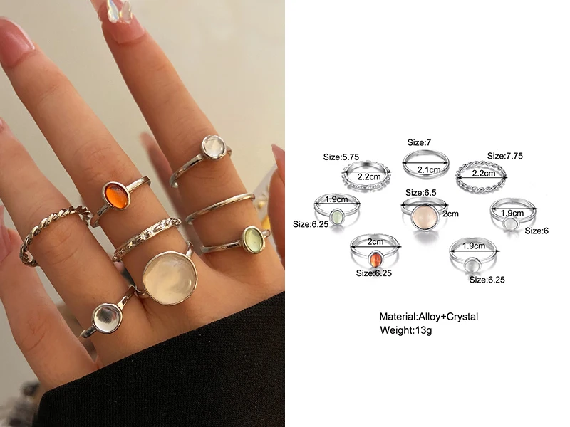 Винтажные летние кольца 8 шт.компл. Феи друзья Красочные камни Металлические Модные кольца на палец корейские Популярные Кольца для женщин и девушек Вечерние