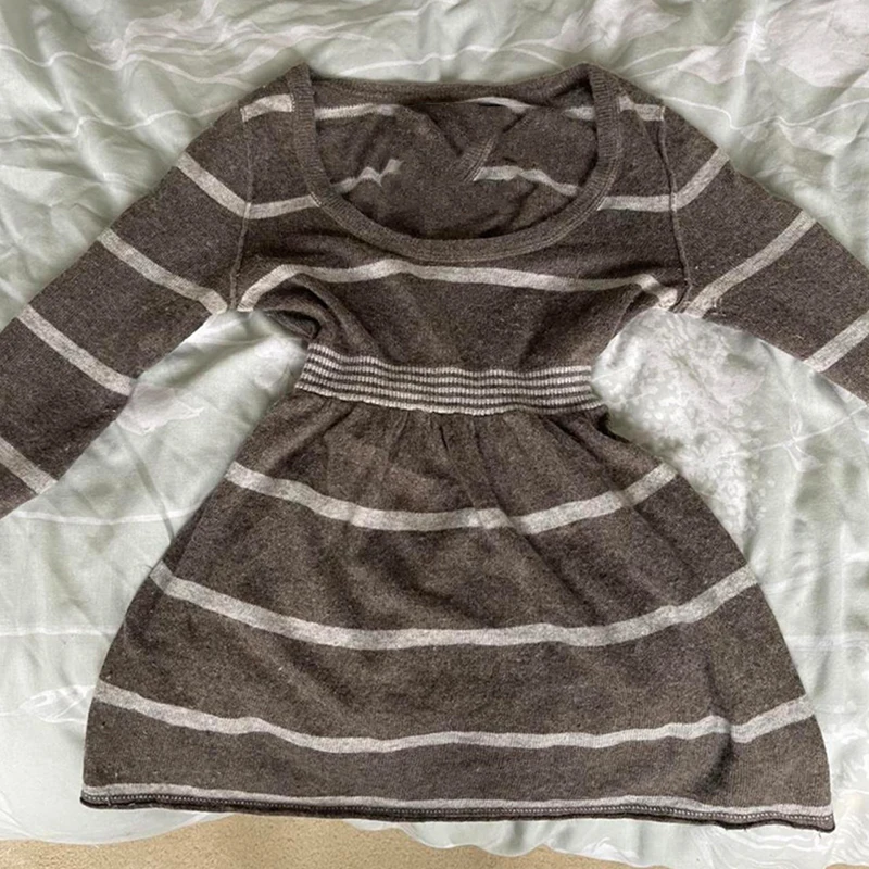 Полосатые пуловеры в стиле ретро Y2K, грандж Fairycore, шикарные вя...