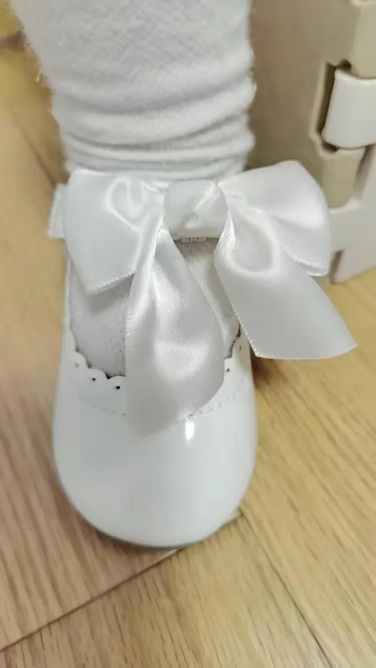 Туфли Детские демисезонные из лакированной кожи, с большим бантом, на плоской подошве