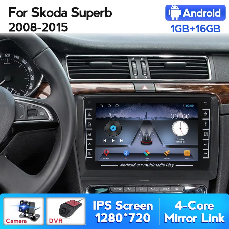 Автомагнитола мультимедийная для Skoda Superb 2 B6 2008 - 2015 с видеоплеером, GPS-навигацией, Android, 2din, 2 din