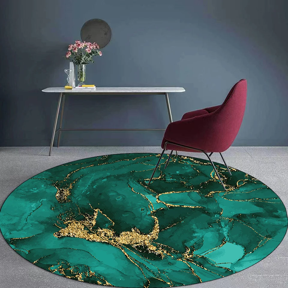 Современный роскошный ковер и коврик для гостиной, золотой, зеленый, черный, абстрактный мраморный круглый коврик для спальни, домашний декор, нескользящий коврик для стула