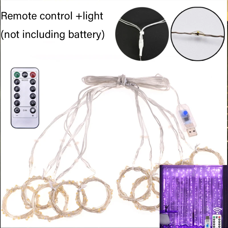 Светодиодный ная Гирлянда-занавеска с дистанционным управлением, USB