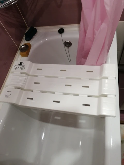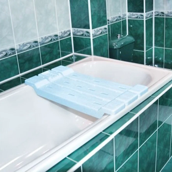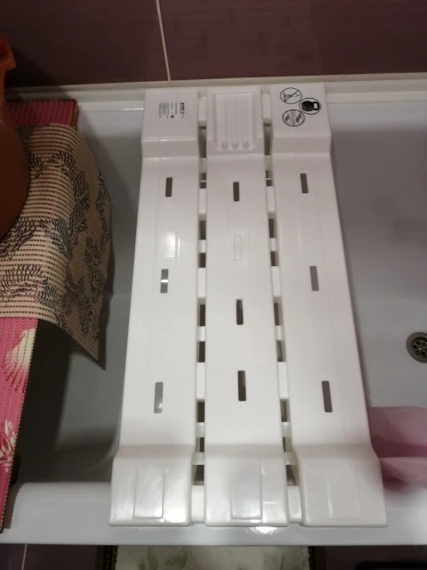 Удобный и продуманный аксессуар надежно ложится на бортики ванной, не скользит, не царапает покрытие и выдерживает вес до 150 кг.