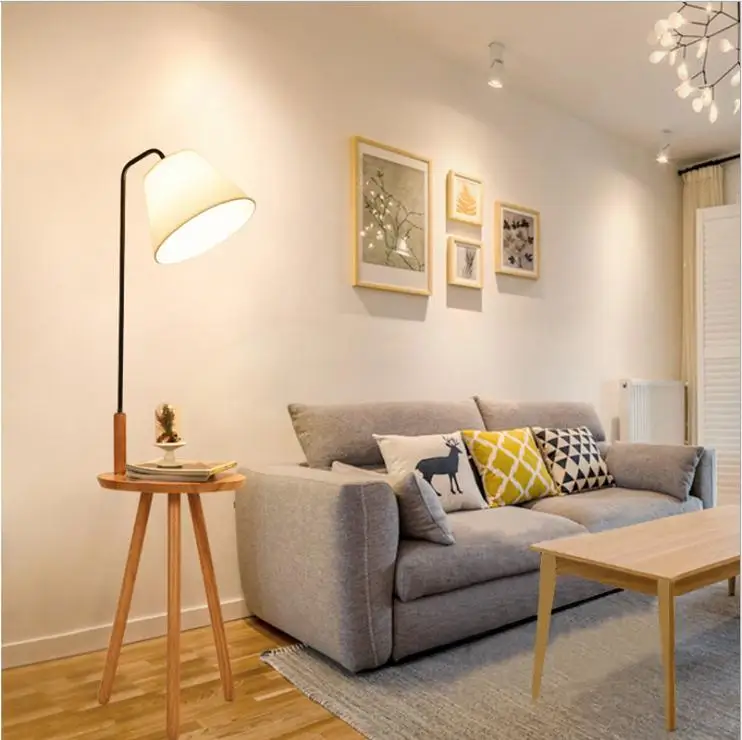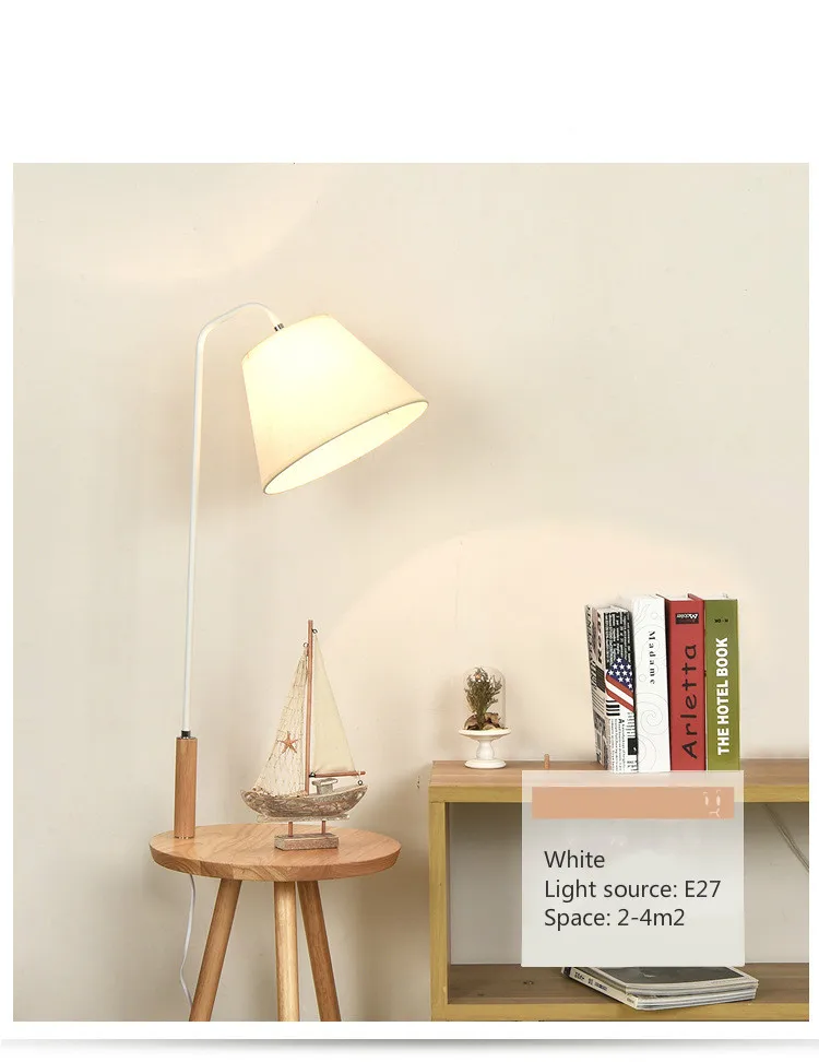 E27 головка винтовой лампы, термостойкая, не легко деформируетсяОкрашенный Железный корпус лампы, прочный и без ржавчины, с текстуройПростой тканевый абажур, высокий светильник, мягкий и ненавязчивый светильникРодная резиновая древесина, твердая древесина, чистая текстура