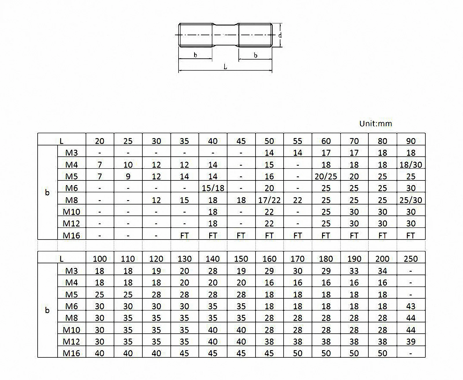 Двухсторонний резьбовой стержень 304, болты-гвоздики из нержавеющей стали, стержень с зубной палочкой, двойная головка, Резьбовая стержень стандарта M16