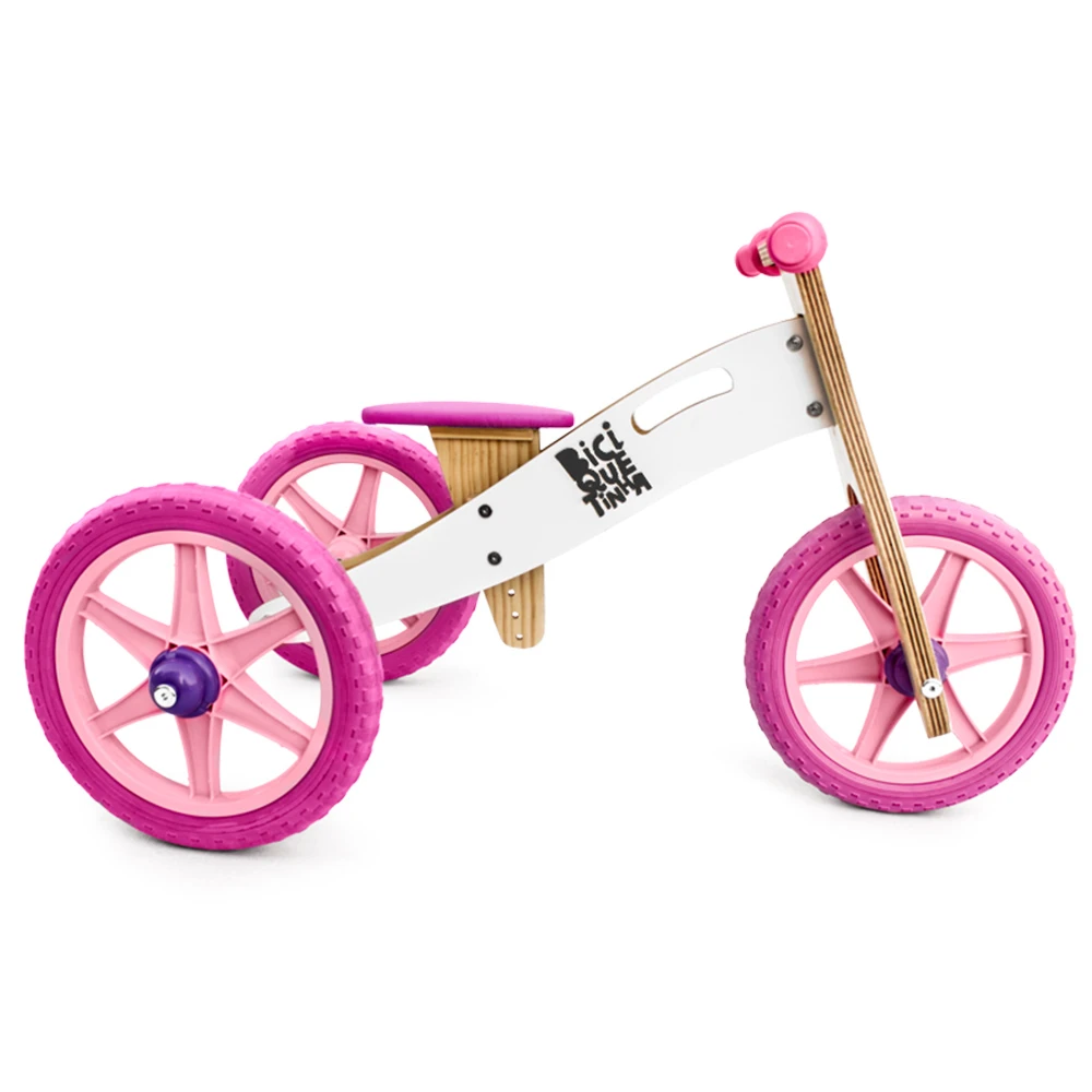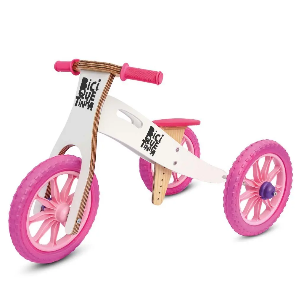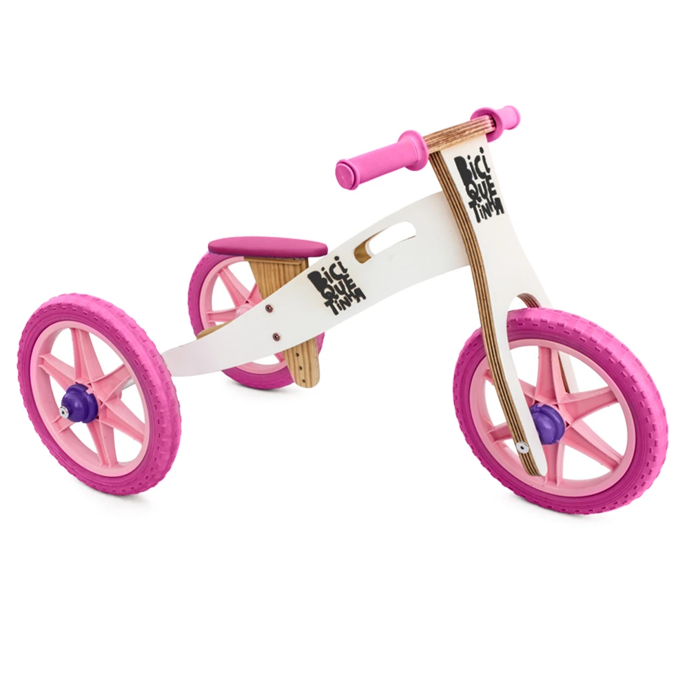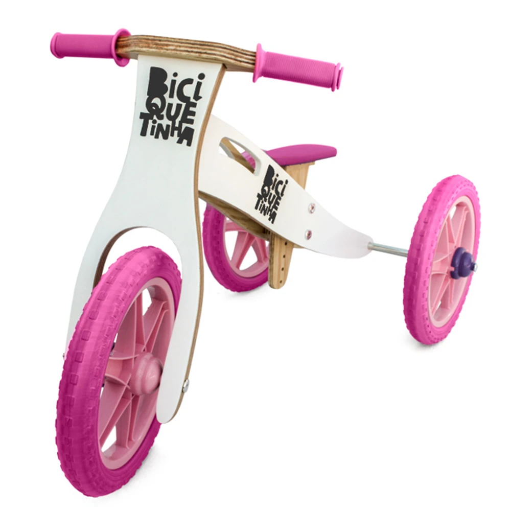 Трехколесный велосипед деревянный 2 в 1 без педали (поворот баланса велосипеда)-снег и розовый-biciquetinha