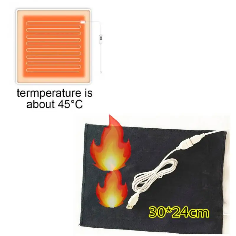 Электрический тканевый обогреватель 5V2A с USB, нагревательный элемент для одежды, обогреватель для домашних животных, автомобильное нагревательное одеяло 24x30 см, 45 ℃