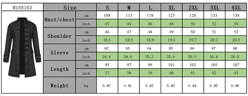 -Материал: полиэстер-Для Мужчин's стимпанк Винтаж пиджак-фрак готические викторианские Фрок пальто униформа костюм для Хэллоуина-Особенности: настоящий карман, пальто до колена, воротник с лацканами, пуговица, длинный рукав-Идеально подходит для маскарада, Танцы вечерние, Косплэй вечерние, а также для выступления. Вы можете быть в центре внимания в толпе.-Эта куртка придаст Вашему образу модный штрих и обязательно подойдет всем стилям и сезонам.-Размер: Пожалуйста, проверьте размер в соответствии с размером таблицы размеров, если вы не знаете, как выбрать размер, пожалуйста, свяжитесь с нами.-Принимаем дропшиппинг, посылка не включает цену или счет-фактуру
