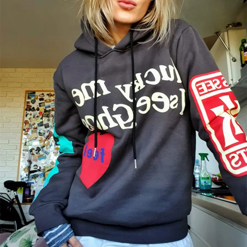 Серый свитер в стиле хип-хоп для мужчин и женщин с принтом граффити и надписью