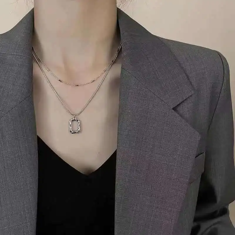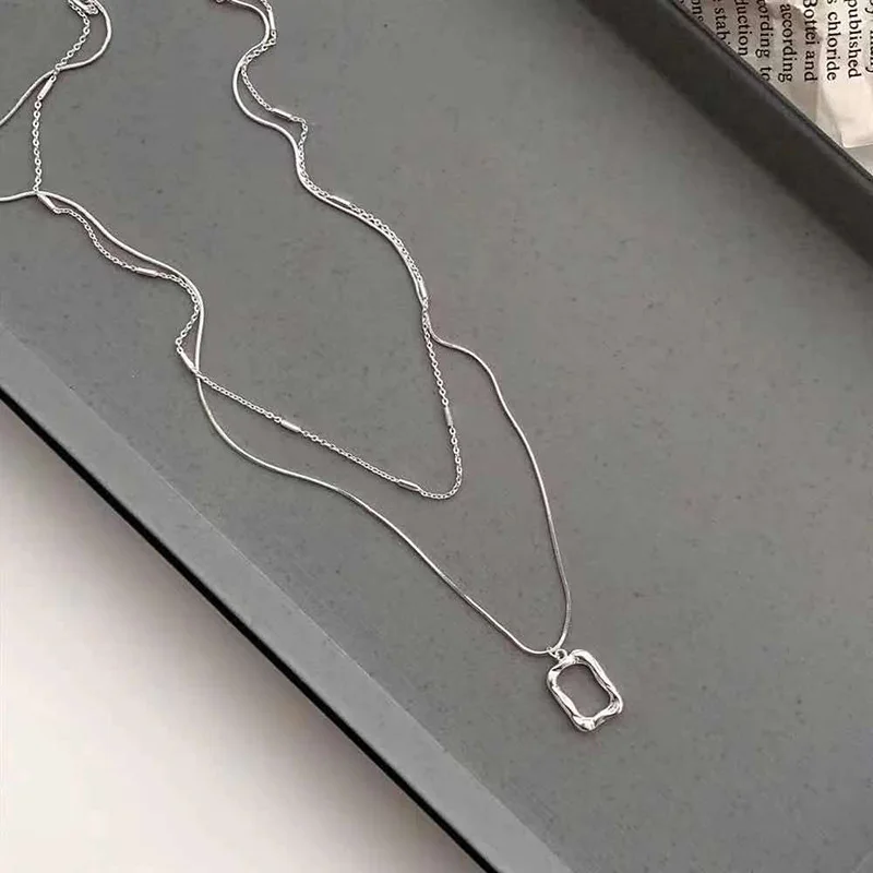 Новое Изысканное циркониевое ожерелье с квадратным кулоном в виде бабочки женская многослойная Серебряная цепочка в стиле панк корейский милый Воротник модные ювелирные изделия