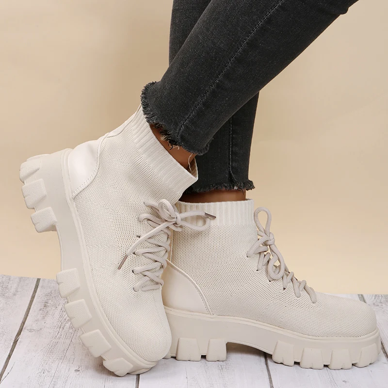 Ботинки женские на платформе, дышащие мотоциклетные носки на танкет...