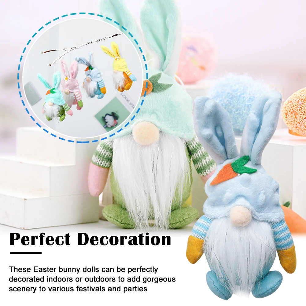 Пасхальный плюшевый кролик, тканевые гномы с заячьими ушами, ручная работа, пасхальный Безликий гномик, кролик, кукла, домашние праздничные настольные статуэтки, подвеска, детские игрушки, подарки, украшение для дома, вечерние украшения