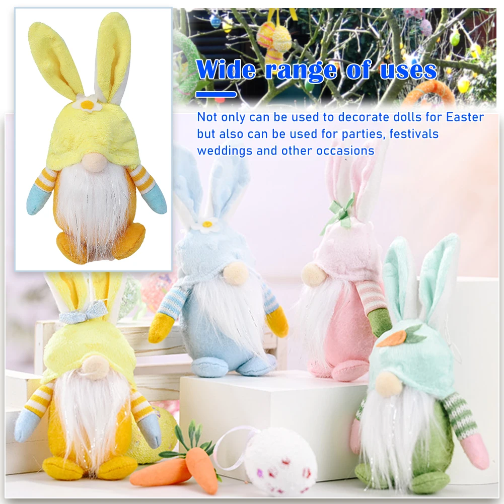 Простота в использовании, без установки и обслуживания, вы можете поместить это пасхальное украшение на полки, плащи или домашние столы, гостиные, спальни и другие места в качестве забавного пасхального украшения.