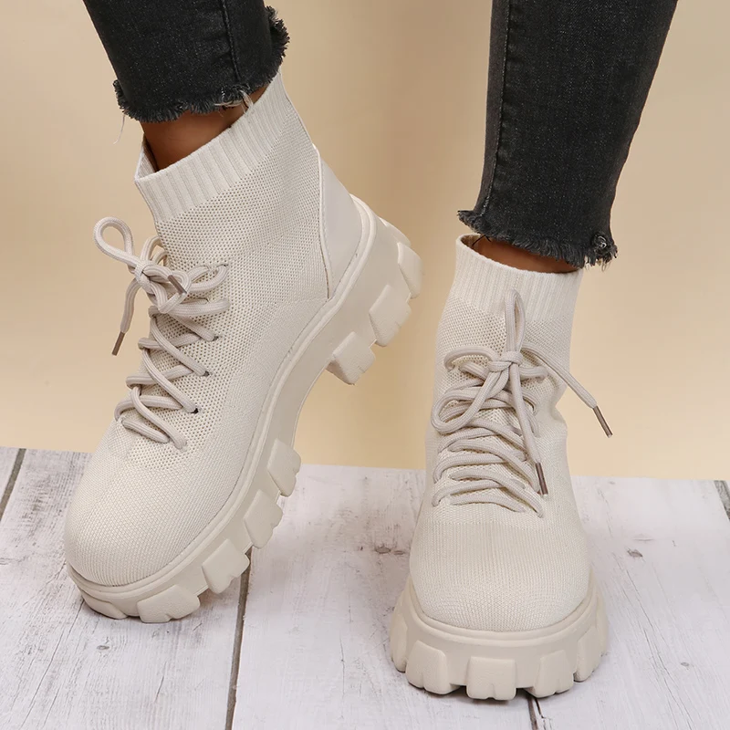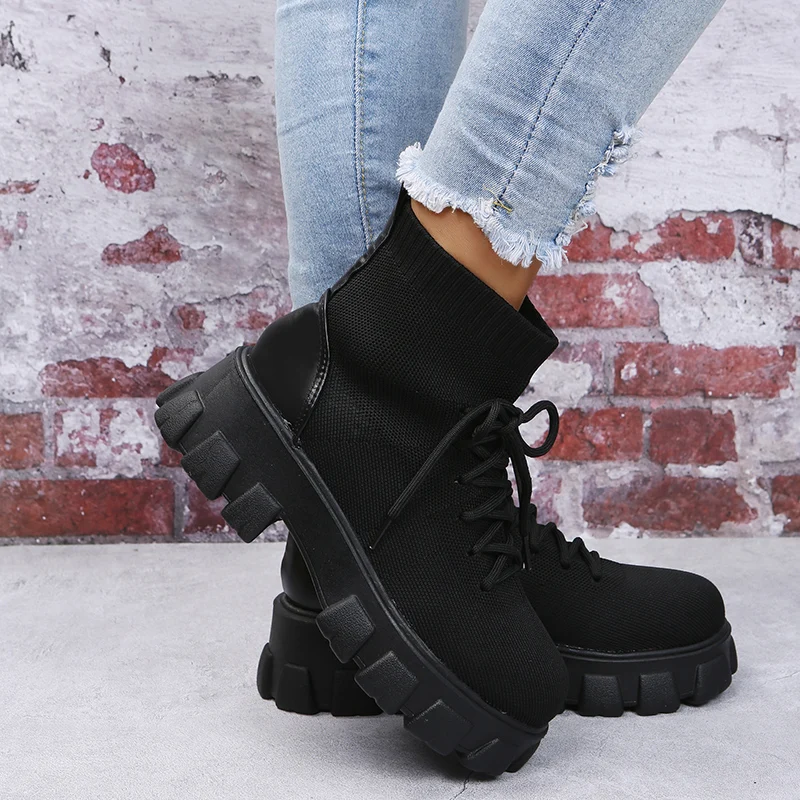 Ботинки женские на платформе, дышащие мотоциклетные носки на танкетке, повседневные, размеры 43, 2021