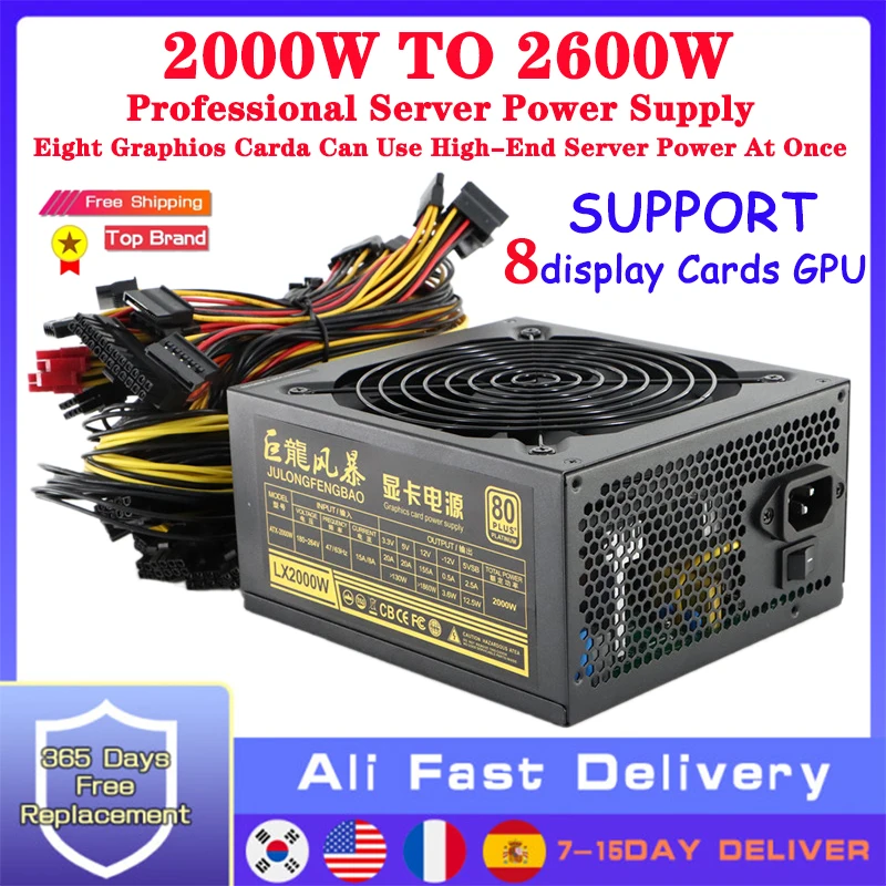 Блок питания ATX для майнинга, 180-264 в, 20002400 Вт, 8 дисплеев