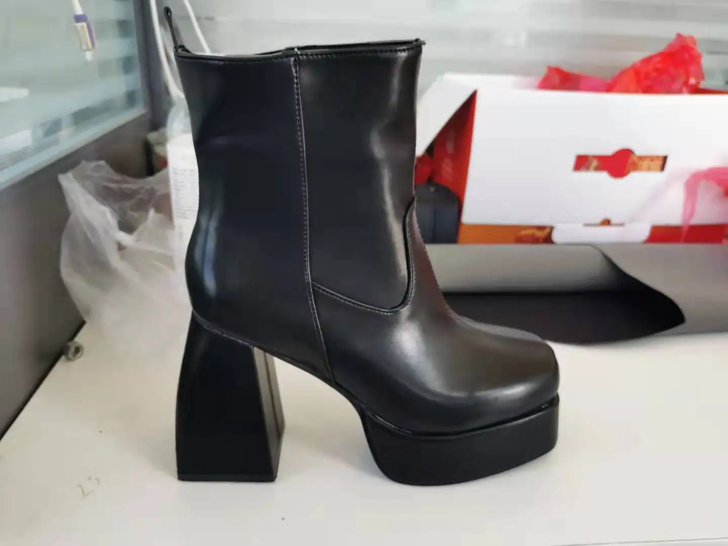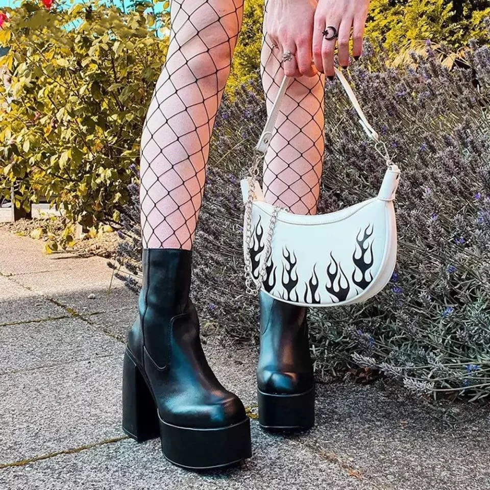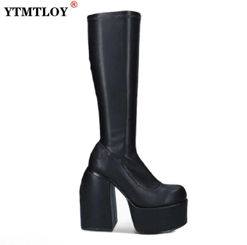 Женские сапоги из микрофибры, черные сапоги до середины икры на платформе и толстом высоком каблуке, в стиле панк, 2022