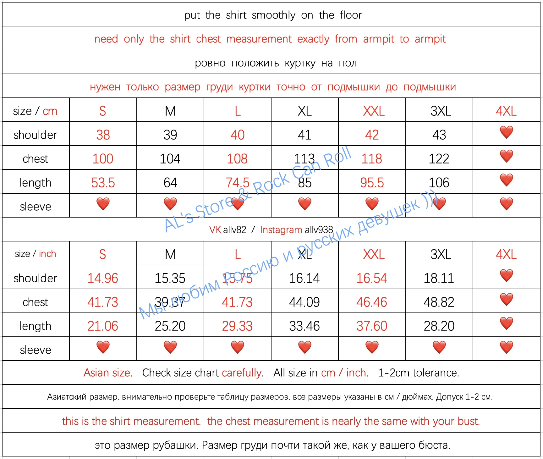 Пожалуйста, измерьте вашу куртку ниже: