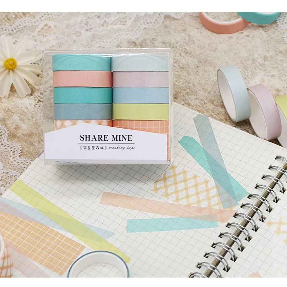 10 рулонов в коробке, милые декоративные канцелярские принадлежности, клейкая лента для скрапбукинга, Маскировочная лента, Васи-лента