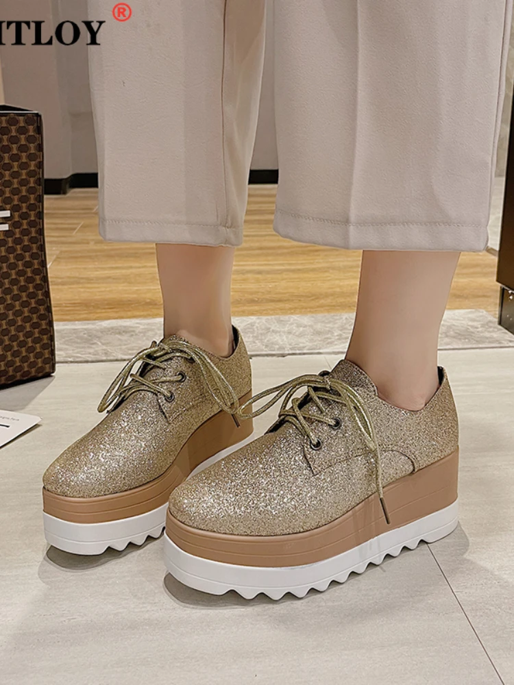 Женские туфли-оксфорды из ПУ кожи, однотонные черные повседневные кроссовки на толстой платформе, на шнуровке, высокий каблук, на осень
