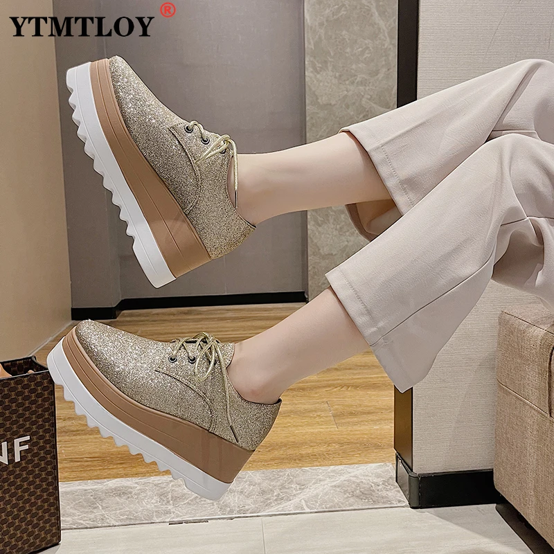 Кроссовки женские на высокой платформе, повседневная обувь на толст...