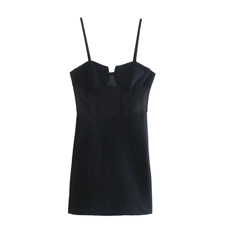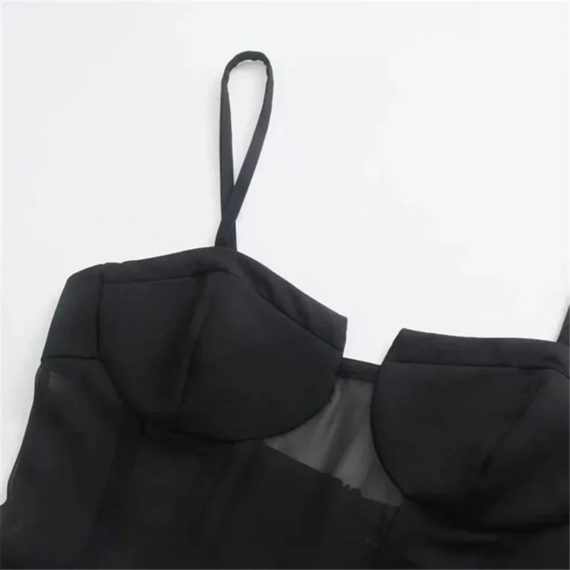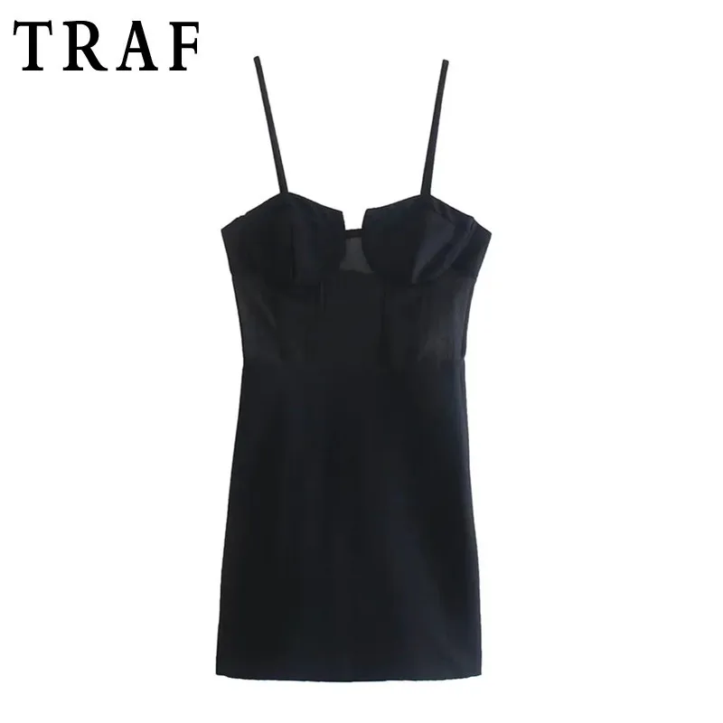 Черное женское платье-комбинация TRAF 2021, полупрозрачное Сетчатое платье-корсет, женское сексуальное платье с открытой спиной, мини-платье для клувечерние