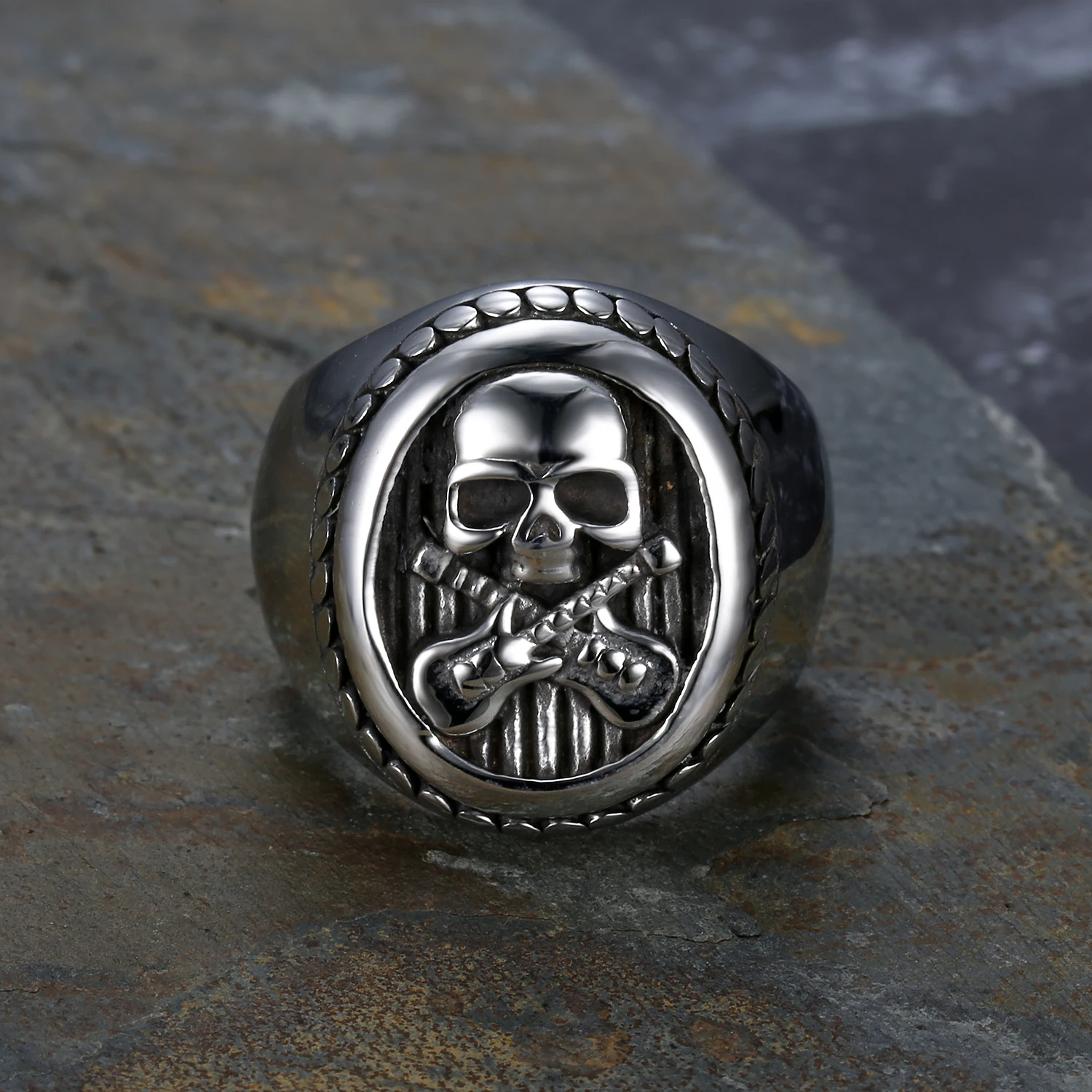Мужское кольцо с гитарой в виде черепа из нержавеющей стали, Размер 7-15