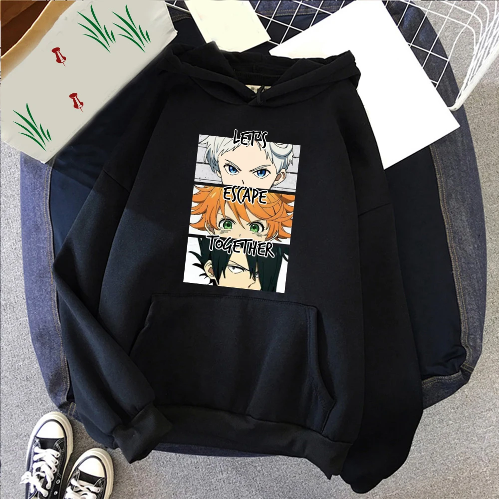 Толстовка с капюшоном из аниме Обещанный невевер, японское аниме с длинным рукавом, аниме Эмма. Норман. Рэй. Худи с принтом