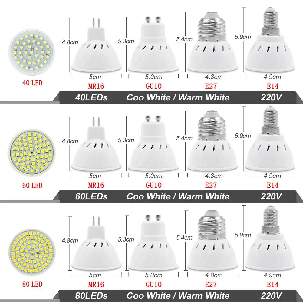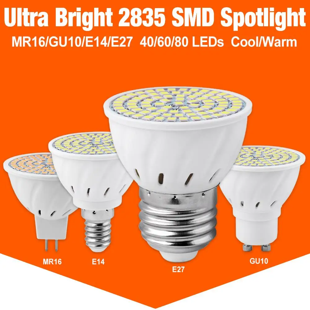 10 шт., светодиодные лампы E27 GU10 MR16 E14 4 Вт 6 Вт 8 Вт 2835 SMD
