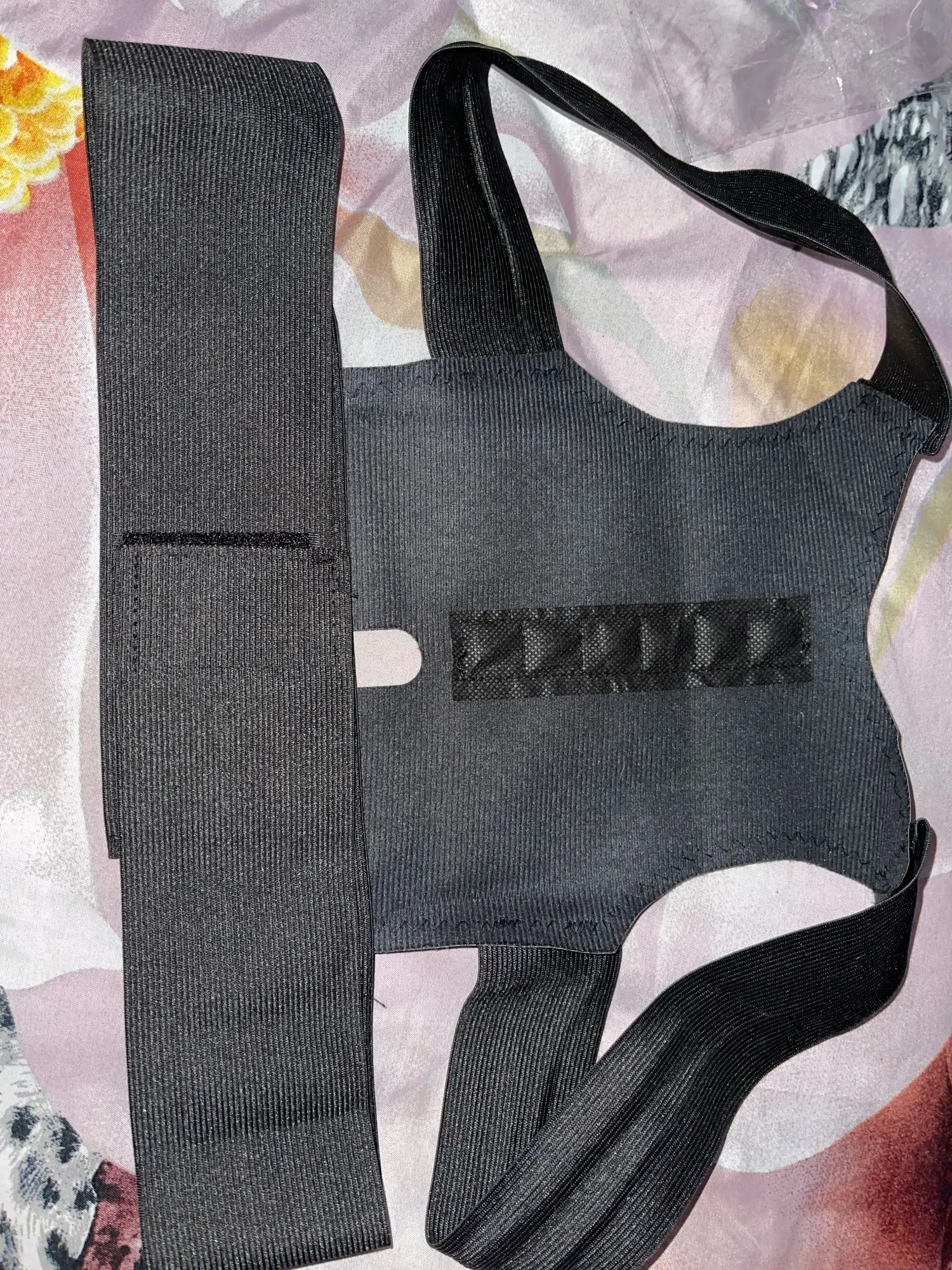 резиновая тряпочка. Давит под мышками, давит на сердце. Перекрывает кровообращение. Спина распрямляется, если её сильно затянуть. После чего случается все вышеизложенное