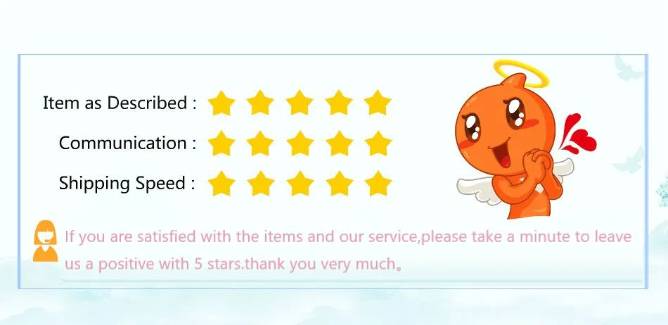-Если вы удовлетворены нашими товарами и услугами, пожалуйста, уделите минуту, чтобы дать нам ответ на оценку 5 звезд.