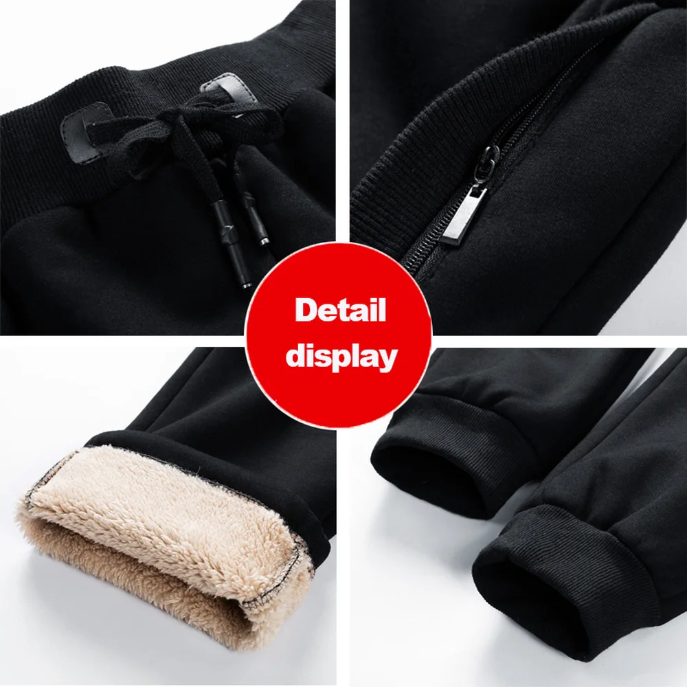 Джоггеры с подкладкой из меха, мужские зимние брюки, плотные теплые брюки с флисовой подкладкой, однотонные осенние спортивные брюки